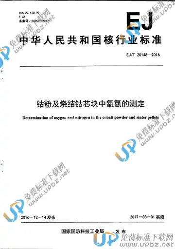 EJ/T 20148-2016 钴粉及烧结钴芯块中氧氮的测定