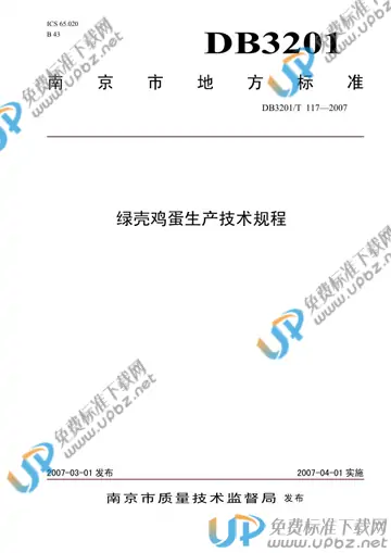 DB 3201/T 117-2007 绿壳鸡蛋生产技术规程