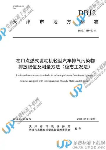 DB12/ 589-2015 在用点燃式发动机轻型汽车排气污染物排放限值及测量方法(稳态工况法)