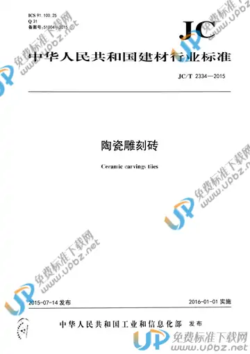 行业标准《陶瓷雕刻砖》由全国建筑卫生陶瓷标准化技术委员会归口上报,主管部门为工业和信息化部。本标准规定了陶瓷雕刻砖的术语和定义、分类和标记、一般要求、技术要求、试验方法、检验规则、标志、产品使用说明书、包装、运输和贮存。本标准适用于装饰目的的陶瓷雕刻砖。