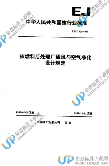 EJ/T 938-1995(2009) 核燃料后处理厂通风与空气净化设计规定