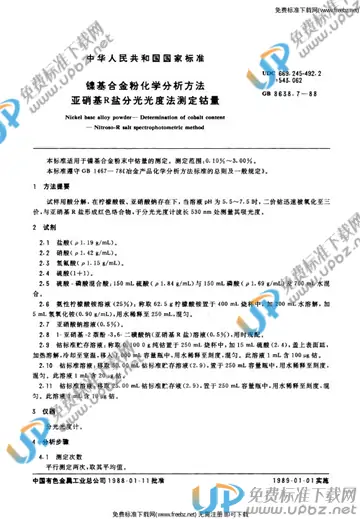 YS/T 539.7-2006 镍基合金粉化学分析方法亚硝基r盐分光光度法测定钴量