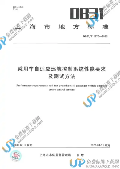 DB31/T 1270-2020 乘用车自适应巡航系统性能要求及测试方法