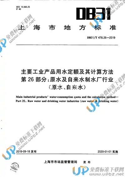 DB31/T 478.26-2019 主要工业产品用水定额及其计算方法 第26部分:原水及自来水制水厂行业(原水、自来水)
