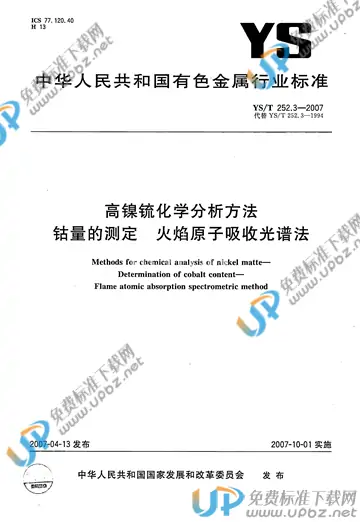 YS/T 252.3-2007 高镍锍化学分析方法 钴量的测定 火焰原子吸收光谱法