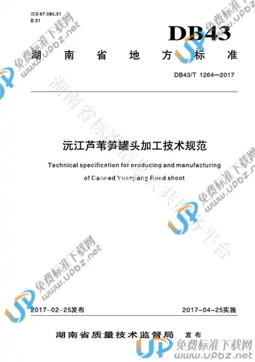 DB43/T 1264-2017 沅江芦苇笋罐头加工技术规范