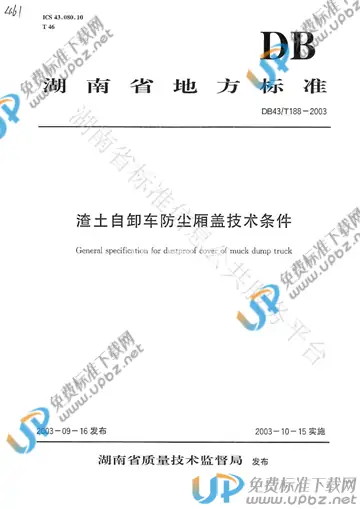 DB43/T 188-2003 渣土自卸车防尘厢盖技术条件