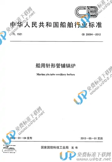 本标准规定了船用立式针形管辅锅炉(以下简称锅炉)的要求、试验方法、检验规则、标志、包装和贮存。本标准适用于设计压力不大于1.8MPa,工作介质为水及饱和蒸汽的锅炉的设计、制造和验收。