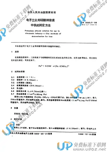 - 标准名称:电子工业用硅酸钾溶液中铁的测定方法