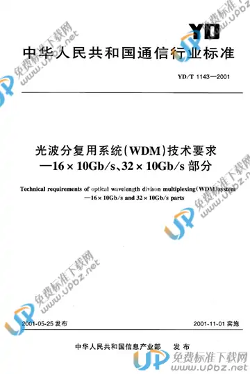 YD/T 1143-2001(2011) 光波分复用系统(WDM)技术要求-16×10Gb/s、32×10Gb/s部分