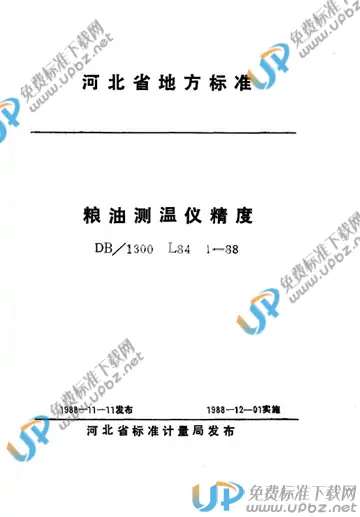 本标准由河北省粮食局提出本标准由河北省廊坊地区粮食局负责起草本标准主要起草人 张玉宗 马增田本标准由河北省粮食局负责解释本标准规定了测温仪精度以及有关精度的条件要求和检定方法。本标准适用于粮食油料各种型号测温仪器。
