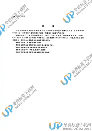 本标准规定了煤矿用隔爆型插销开关的产品分类、技术要求、试验方法、检验规则、标志、包装、运输和贮存。本标准适用于作为对交流异步鼠笼式电动机等电气设备进行不频繁的接通、分断,并对它们具有相应保护措施的煤矿用隔爆型插销开关(以下简称“擂梢开关”)。