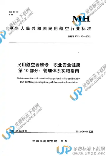 行业标准《职业安全健康管理体系实施指南》由中国民航科学技术研究院归口上报,主管部门为中国民用航空局。本部分规定了建立民用航空器维修职业安全健康管理体系的基本要求、主要步骤和体系的实施。本部分适用于民用航空器维修职业安全健康管理体系的建立和保持。