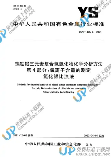 行业标准《镍钴铝三元素复合氢氧化物化学分析方法 第4部分:氯离子含量的测定 氯化银比浊法》,主管部门为工业和信息化部。本文件规定了镍钴铝三元素复合氢氧化物中氯离子含量的测定方法。 本文件适用于镍钴铝三元素复合氢氧化物中氯离子含量 的测定。测定范围:0.0010%~0.30%。