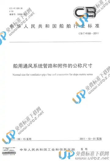 - 标准名称:船用通风系统管路和附件的公称尺寸