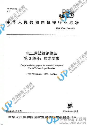 JB/T 10441.3-2004 电工用皱纹绝缘纸 第3部分:技术要求