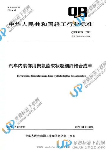 QB/T4674-2014汽车内饰用聚氨酯束状超细纤维合成革QB/T2888-2007聚氨酯束状超细纤维合成革QB/T4909-2016水性聚氨酯超细纤维合成革QB/T4477-2013鞋面用聚氨酯超细纤维合成革QB/T5151-2017内墙装饰用超细纤维聚氨酯壁革QB/T5148-2017家具用定岛超细纤维聚氨酯合成革QB/T5069-2017防护手套用聚氨酯超细纤维合成革QB/T5142-2017服装用聚氨酯定岛型超细纤维合成革QB/T4046-2010聚氨酯超细纤维合成革通用安全技术条件QB/T4875-2015运动手套用聚氨酯超细纤维合成革