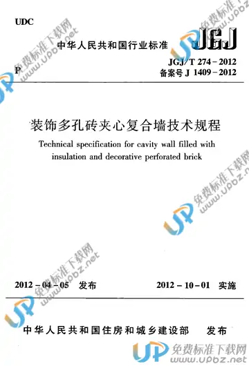 JGJ/T 274-2012 装饰多孔砖夹心复合墙技术规程