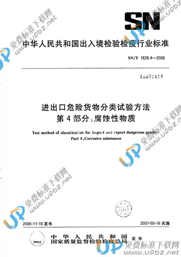 行业标准《进出口危险货物分类试验方法 第4部分:腐蚀性物质》由国家认证认可监督管理委员会归口上报,主管部门为国家质量监督检验检疫总局。SN/T 1828 的本部分规定了进出口腐蚀性物质的试验、类别判定。 本部分适用于进出口腐蚀性物质危险特性及适用包装类别的试验。