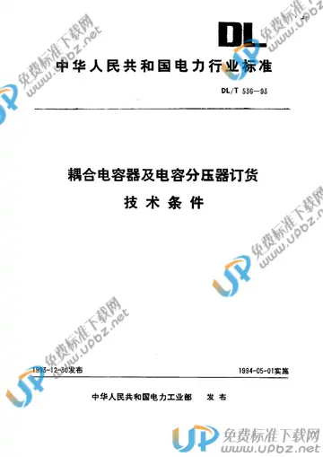 DL/T 536-1993 耦合电容器及电容分压器订货技术条件