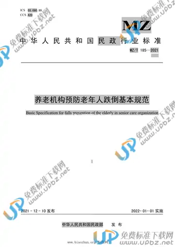 - 标准名称:养老机构预防老年人跌倒基本规范