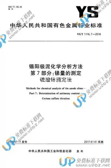 YS/T 1116.7-2016 锡阳极泥化学分析方法 第7部分:锑量的测定 硫酸铈滴定法