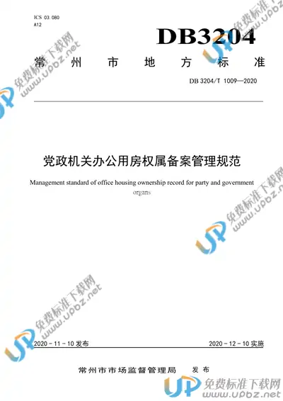 地方标准《党政机关办公用房权属备案管理规范》由常州市机关事务管理局归口上报,主管部门为常州市市场监督管理局。本文件适用于党政机关依法占有、使用的权属不清、权证不全的基本办公用房和附属用房的权属备案管理。