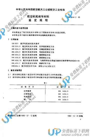 HB 5434.2-1989 航空机轮刹车材料 鉴定规程