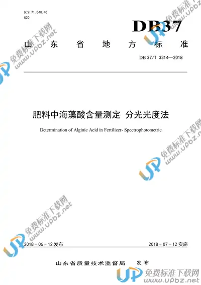地方标准《肥料中海藻酸含量测定 分光光度法》,主管部门为山东省市场监督管理局。本标准规定了采用硫酸-咔唑分光光度法和间羟基联苯分光光度法测定肥料中海藻酸含量的试验方法。本标准适用于以海藻为原料加工制造的海藻酸肥料。硫酸咔唑显色法不适用于含硝酸根、葡萄糖等中性糖类物质及其它在比色过程中产生干扰的海藻酸肥料。间羟基联苯显色法不适用于含硝酸根、腐植酸类物质及其它在比色过程中产生干扰的海藻酸肥料。