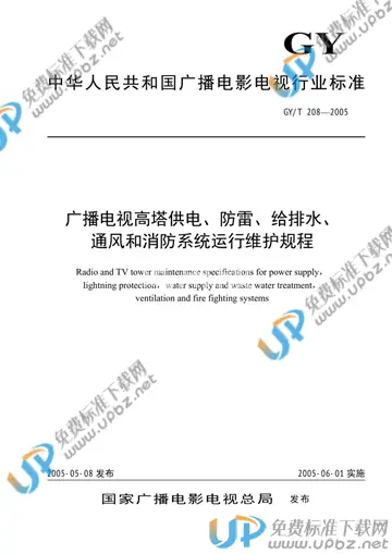 GY/T 208-2005 广播电视高塔供电、防雷、给排水、通风和消防系统运行维护规程