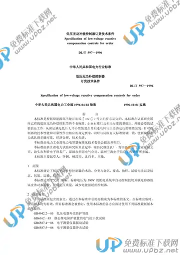 DL/T 597-1996 低压无功补偿控制器订货技术条件