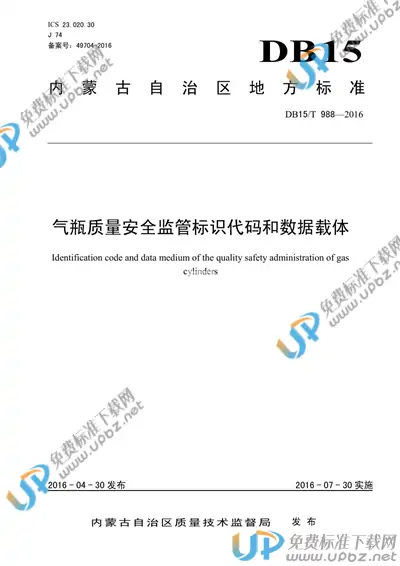DB15/T 988-2016 气瓶质量安全监管标识代码和数据载体