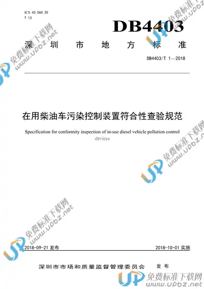 地方标准《在用柴油车污染控制装置符合性查验规范》由深圳市人居环境委员会归口上报,主管部门为深圳市市场监督管理局。本标准适用于在用柴油车的环保定期检验、现场检查、抽样抽测等环节。