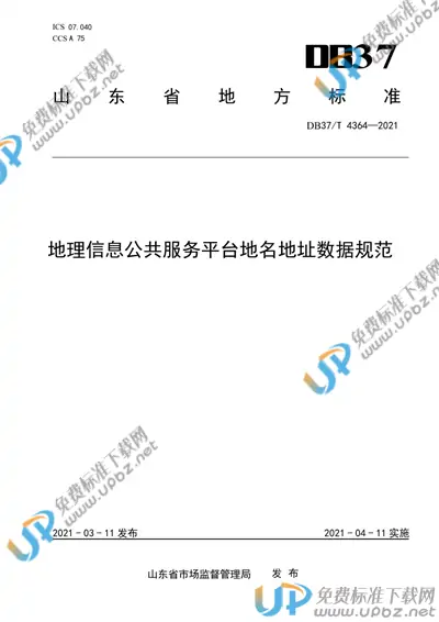 地方标准《地理信息公共服务平台地名地址数据规范》,主管部门为山东省市场监督管理局。本文件规定了地理信息公共服务平台框架数据中地名地址数据的基本要求、地址结构化描述规则、编码规则、地名分类规则、几何表达规则、质量要求等。本文件适用于山东省地理信息公共服务平台建设和市、县级地理信息公共服务平台建设中地名地址数据的制作、加工与处理。