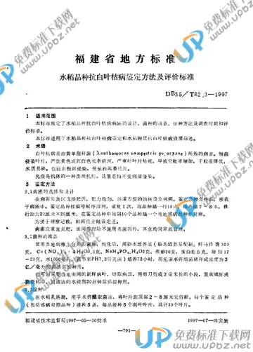 DB35/T 82.3-1997 水稻品种抗白叶枯病鉴定方法及评价标准