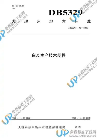 地方标准《白及生产技术规程》由大理白族自治州市场监督管理局归口上报,主管部门为大理白族自治州市场监督管理局。