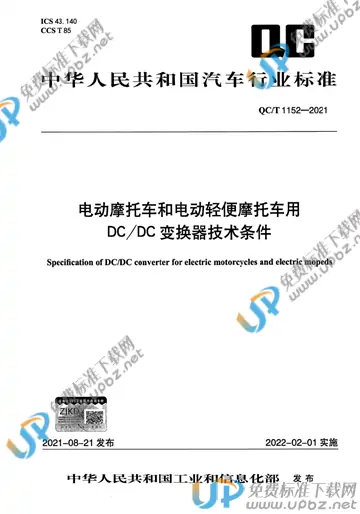 QC/T 1152-2021 电动摩托车和电动轻便摩托车用DC/DC变换器技术条件