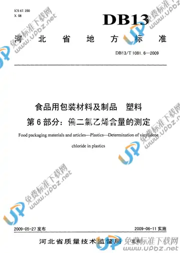 DB 13/T 1081.6-2009 食品用包装材料及制品 塑料 第6部分:偏二氯乙烯含量的测定