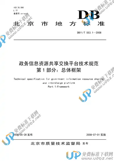 DB11/T 553.1-2008 政务信息资源共享交换平台技术规范 第1部分:总体框架