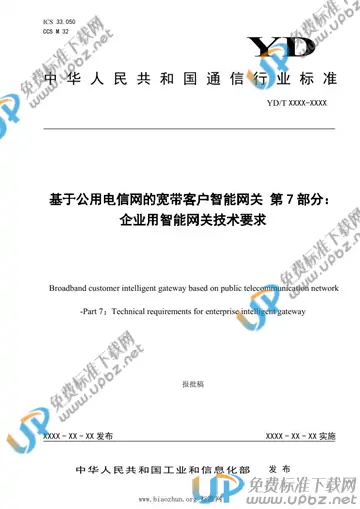 - 标准名称:基于公用电信网的宽带客户智能网关 第7部分:企业用智能网关技术要求