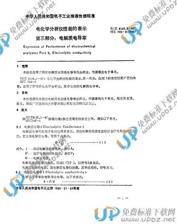 SJ/Z 9125.3-1987(2009) 电化学分析仪性能的表示 第三部分:电解质电导率