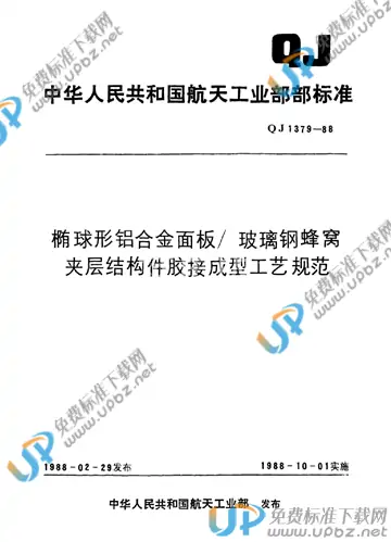 QJ 1379-1988 椭球形铝合金面板/玻璃钢蜂窝夹层结构件胶接成型工艺规范