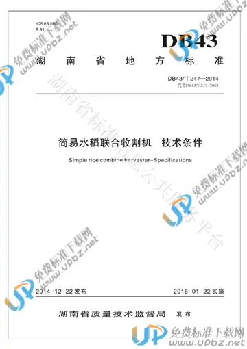 DB43/T 247-2014 简易水稻联合收割机 技术条件