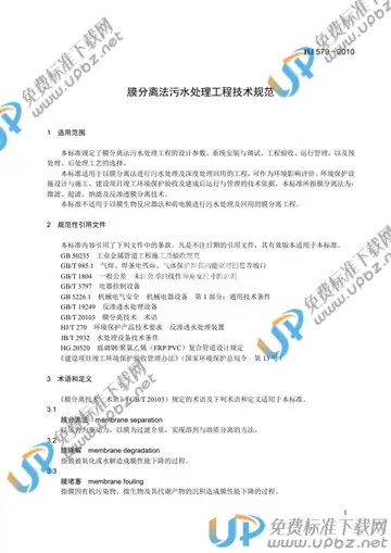 HJ 579-2010 膜分离法污水处理工程技术规范