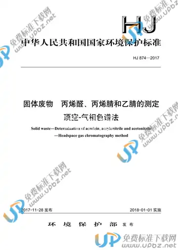 HJ 874-2017 固体废物 丙烯醛、丙烯腈和乙腈的测定 顶空-气相色谱法