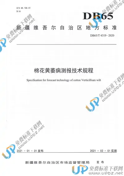 地方标准《棉花黄萎病测报技术规程》,主管部门为新疆维吾尔自治区市场监督管理局。