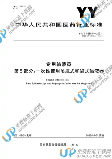 YY/T 0286.5-2021 专用输液器 第5部分:一次性使用吊瓶式和袋式输液器