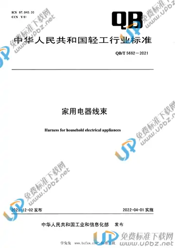 行业标准《家用电器线束》由产品归口上报,主管部门为工业和信息化部。本文件规定了家用电器线束的术语和定义、要求、试验方法、检验规则、标志、包装和贮存。 本文件适用于额定电压小于 250 V 的各种家用电器线束 (含单根线)。 本文件不适用于使用中经受高温、低温、弯折、磨损、外部非空气氛围等环境的线束。