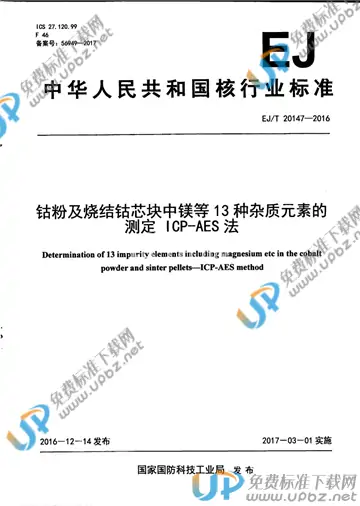 EJ/T 20147-2016 钴粉及烧结钴芯块中镁等13种杂质元素的测定 ICP-AES法