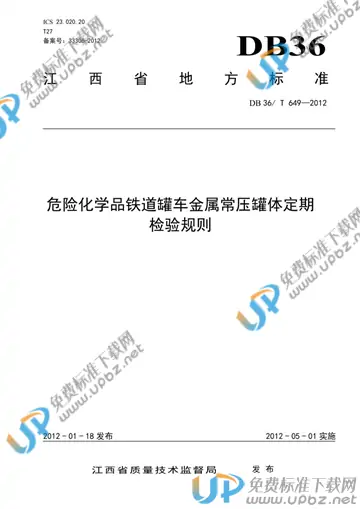 DB36/T 649-2012 危险化学品铁道罐车金属常压罐体定期检验规则